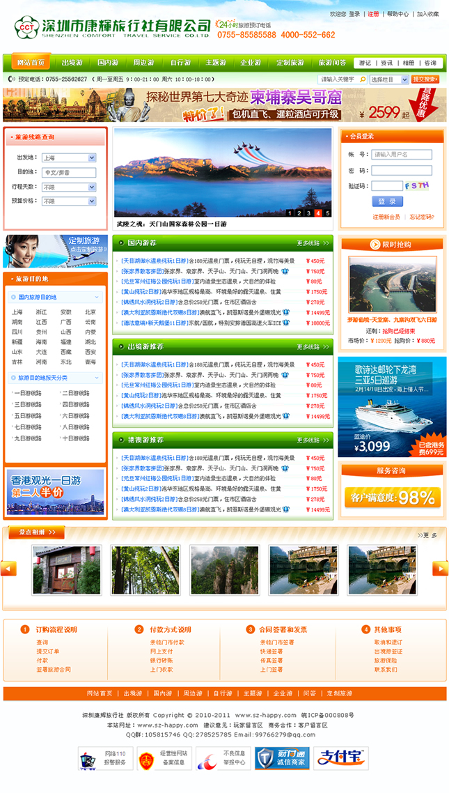 中國康輝旅行社有限責任公司以“網(wǎng)絡化”、“規(guī)模化”、“品牌化”為發(fā)展目標,致力于“國內(nèi)成網(wǎng)、國外成鏈”的建設。日臻完善的全國網(wǎng)絡和垂直管理模式形成康輝集團在全國旅行社行業(yè)獨特的優(yōu)勢,遍布全國及海外的網(wǎng)絡及2300余名優(yōu)秀員工真誠為海內(nèi)外旅游者提供全方位的優(yōu)質服務。北起哈爾濱,南至深圳、海南,東起上海,西至甘肅、新疆, “中國康輝”在全國各大城市設有70多家垂直管理的分公司(分社),其中1999及2000年度就有8個分社進入全國國際旅行社百強行列。2001及2002年,“中國康輝”在國家旅游局 “全國國際旅行社百強企業(yè)”的業(yè)績排名已列三甲,企業(yè)實力不斷發(fā)展壯大!