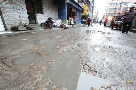 昨天,記者來到位于四季陽光小區(qū)西門外的這條支路,看到道路破損確實(shí)嚴(yán)重,沒走上幾步就出現(xiàn)一個(gè)大坑,有的坑中積滿了臟水,有的坑中填了些碎煤渣,巷子旁的一家幼兒園門前,幾只雞不停地啄著坑里的土。“這條‘鬧心路’,下雨天不知道滑倒了多少人。”長年在路口擺地?cái)傎u些小雜貨的秦大媽說。 “這條路連著土鍋一條街和涂山路,是一條老路,曾經(jīng)叫南崗二路,每天有數(shù)萬人經(jīng)過這里。”高大姐在這條路上開了8年的小賣部,小店里常備一把手電筒,就怕夜里摔倒,她說最怕下雨天,“一下雨我就發(fā)愁,積水坑接二連三,顧客來買點(diǎn)東西還要蹚著泥水過,誰愿意來呢!經(jīng)常走這條路的周邊群眾都盼著能夠盡早修一修。