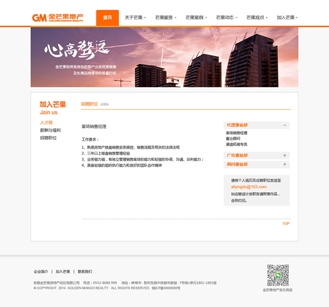 金芒果基于對(duì)中國(guó)房地產(chǎn)的執(zhí)著追求,憑借對(duì)市場(chǎng)營(yíng)銷的激情創(chuàng)新,以完全經(jīng)過市場(chǎng)檢驗(yàn)的專家團(tuán)隊(duì)和對(duì)市場(chǎng)的敏銳天賦,大膽構(gòu)思、執(zhí)著實(shí)踐、激情專注、科學(xué)分析,贏得了業(yè)主的廣泛認(rèn)同和支持,并以優(yōu)異業(yè)績(jī)和服務(wù)質(zhì)量,被客戶譽(yù)為具實(shí)效、富激情、科學(xué)嚴(yán)謹(jǐn)?shù)膶I(yè)房地產(chǎn)服務(wù)商。